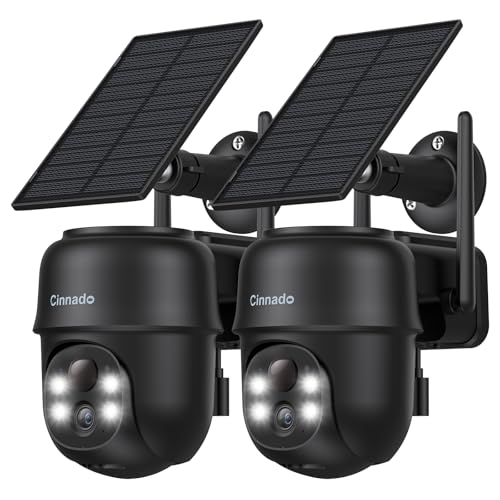 Cinnado Überwachungskamera Aussen Akku Solar - 2K Kamera Überwachung Aussen Solar, WLAN Kamera Outdoor mit PTZ, PIR Bewegungsmelder, Farbnachtsicht, Zwei-Wege-Audio, 2er Set Cinnado Überwachungskamera Aussen Akku Solar - 2K Kamera Überwachung Aussen Solar, WLAN Kamera Outdoor mit PTZ, PIR Bewegungsmelder, Farbnachtsicht, Zwei-Wege-Audio, 2er Set