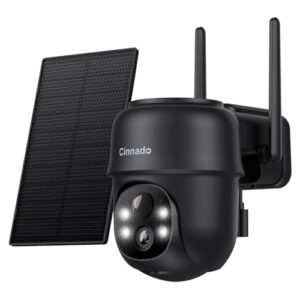 Cinnado Überwachungskamera Aussen Solar – 2K Aussenkamera WLAN Kabellos Akku, 360 Grad PTZ, PIR Bewegungsmelder IP65, Farbnachtsicht, Zwei-Wege-Audio (Schwarz)