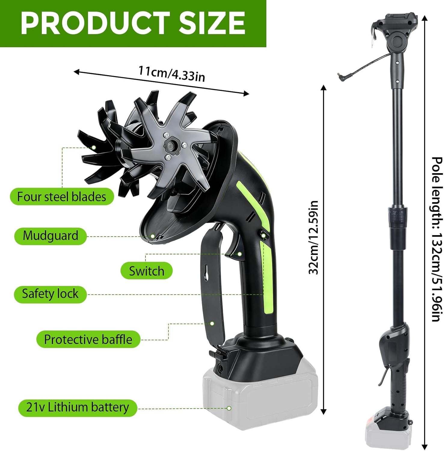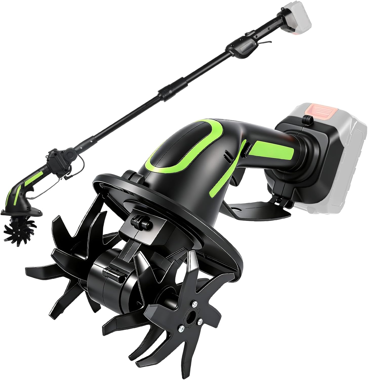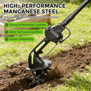 - ERGONOMISCHES DESIGN: Diese Akku-Gartenfräse ist 32 cm lang und wird mit einer 132 cm langen Verlängerungsstange für individuelle Anpassung geliefert. Der ergonomische Griff und der verstellbare Zusatzhandgriff reduzieren die Ermüdung beim Arbeiten. Dank dieses benutzerfreundlichen und multifunktionalen Designs können Gartenliebhaber jeden Alters die Gartenarbeit genießen! (Hinweis: Die Verlängerungsstange ist nicht ausziehbar.)