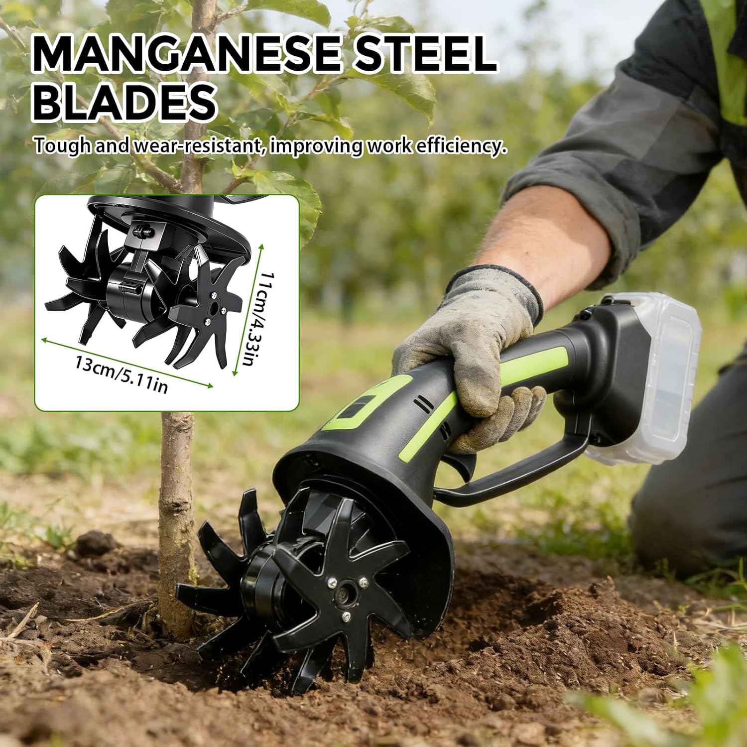 Produktbeschreibungen Es kann problemlos Böden mit einer Breite von 10 cm und einer Tiefe von 10 cm bearbeiten.Elektrische Bodenfräsen sind einfach zu bedienen, sodass Sie sich auf das Züchten gesunder Pflanzen konzentrieren können. Diese kleine Fräse eignet sich hervorragend zum Bewegen von Gegenständen in den Blumenbeeten rund um Ihr Haus.Diese kabellose elektrische Fräse ist eine praktische und umweltfreundliche Wahl für die Pflege Ihres Gartens, Hofs oder Rasens.Weicher, ergono