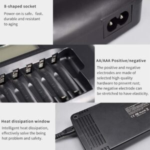 - LCD-Display – Das Ladegerät mit intelligentem LCD-Bildschirm zeigt den gesamten Ladevorgang für die AA/AAA-Batterien an.