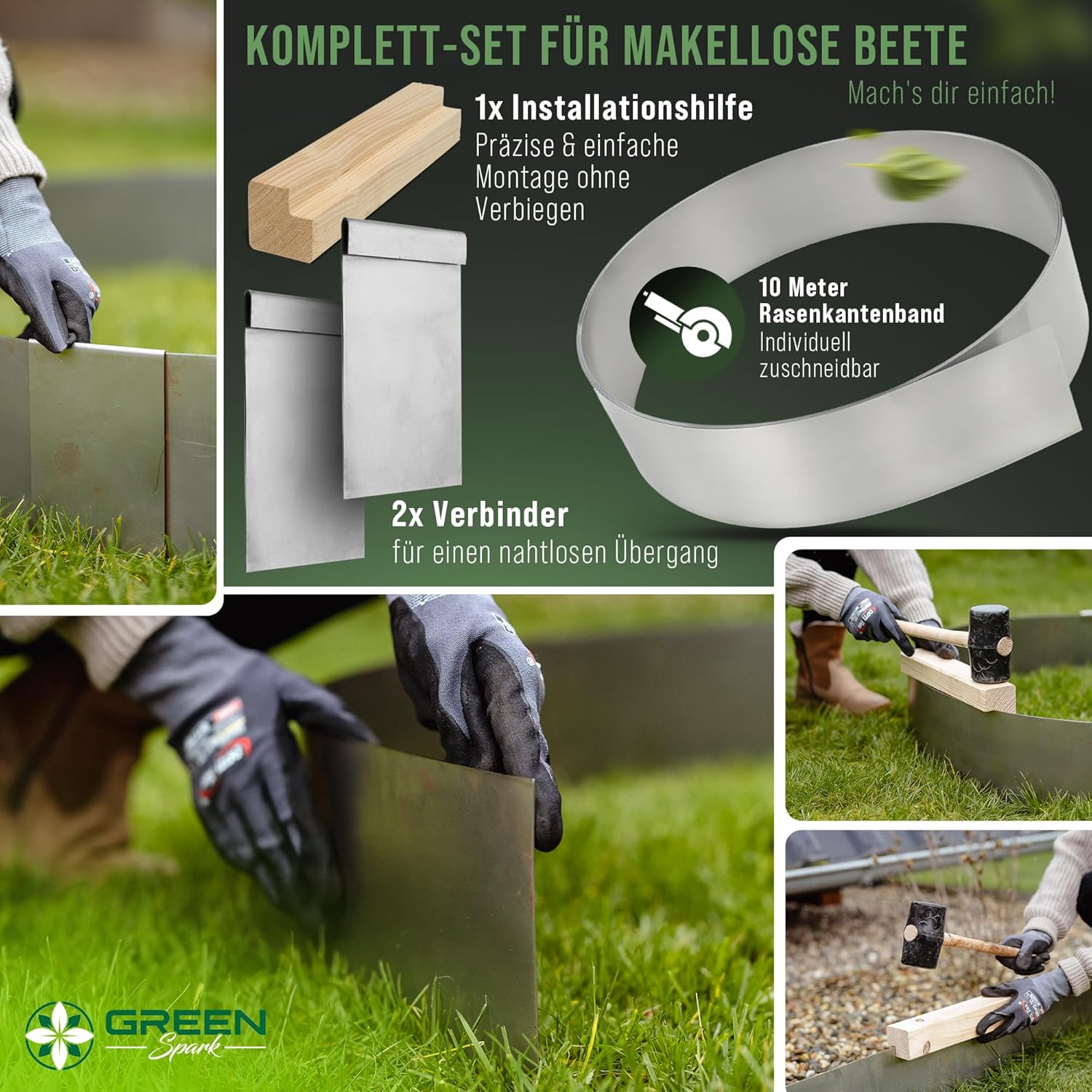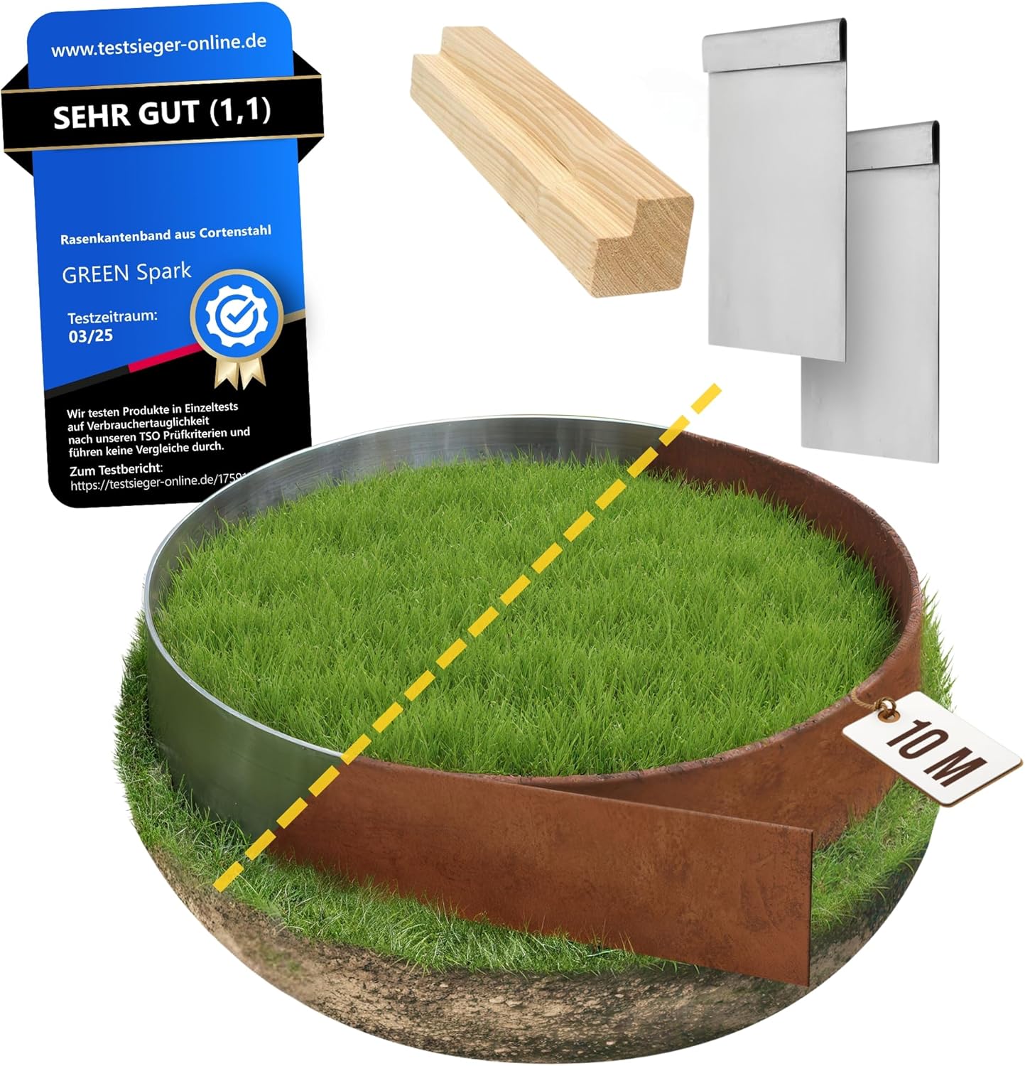 | Lieferumfang | Rasenkantenband + Holz-Installationshilfe |
