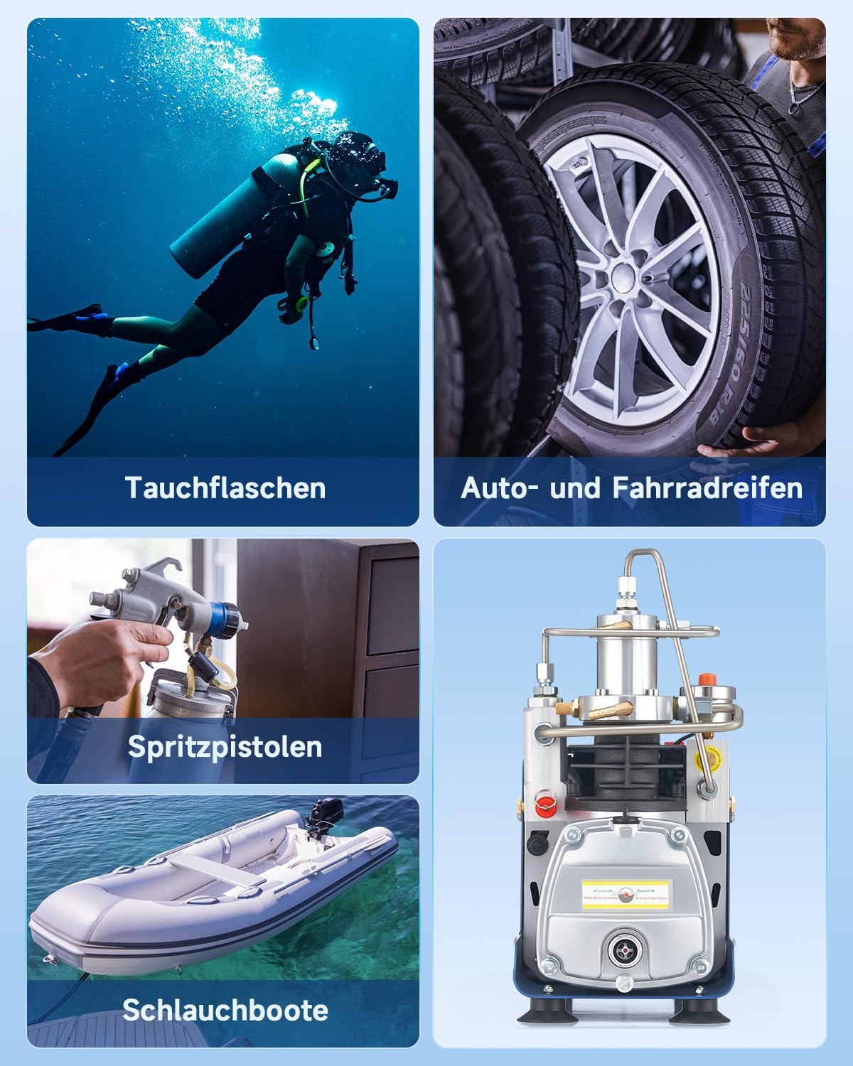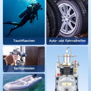 Ein 300 Bar Kompressor wird für verschiedene Hochdruckanwendungen eingesetzt, bei denen präzise Luftdrücke erforderlich sind. Dazu gehören unter anderem das Befüllen von Luftgewehren und Paintball-Markierern sowie die Durchführung von Druckdichtigkeits- und Luftundurchlässigkeitsprüfungen. Das Gerät ist mit einer Leistungsbewertung von 4,4 Sternen vielseitig für solche technischen Anwendungen in der Werkstatt oder im Sportbereich einsetzbar.