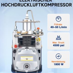 Der CREWORKS PCP Kompressor 300bar wurde speziell für Schützen, Paintball-Enthusiasten und spezialisierte Handwerker entwickelt, die eine kompromisslose Hochdrucklösung benötigen. Mit einer Leistung von 1800W ermöglicht dieses Gerät das effiziente Befüllen von Gasflaschen und Druckluftsystemen bis zu einem Arbeitsdruck von 300 BAR (4500 PSI).