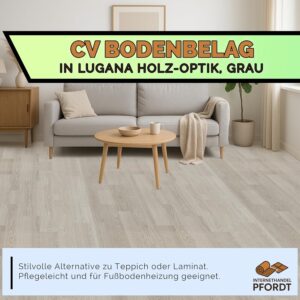 Dieser CV-Bodenbelag der Serie Lugana ist die ideale Lösung für Heimwerker und Mieter, die Wohn- oder Arbeitsbereiche schnell und unkompliziert optisch aufwerten möchten. Mit seiner täuschend echten Holzoptik in Grau bietet er eine wohnliche Atmosphäre bei gleichzeitig hoher Zweckmäßigkeit. Er ist damit das perfekte Material für alle, die eine pflegeleichte und kosteneffiziente Bodenlösung ohne aufwendige Unterbaukonstruktionen suchen.