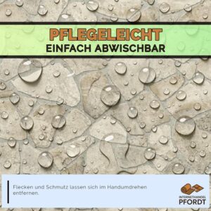 - Naturgetreue Optik: Die Beige-Grau-Färbung im bewehrten Stein-Look sorgt für eine zeitlose Ästhetik, die sich in nahezu jedes Interior-Konzept integriert.