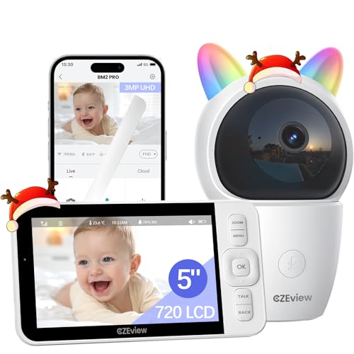 CZEview Babyphone mit Kamera, 2K/5,0″ HD WLAN Video Babyfon mit App, 360°, 4× Zoom, Nachtsicht, Automatische Verfolgung, Weinen/Bewegungs/Geräuscherkennung, Temperaturanzeige