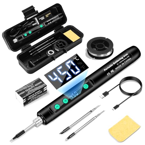 • 【Vielseitig】Lötkolben akku eignet sich für verschiedene Lötarbeiten, wie z. B. elektronische Bauteile, Leiterplatten, Schmuckreparaturen und andere vielseitige Anwendungen. Er erfüllt vielfältige Lötanforderungen und ermöglicht Ihnen die Auswahl verschiedener Lötspitzen für verschiedene DIY-Projekte (Stellen Sie sicher, dass die Lötspitze vollständig sitzt, um ein Lösen während des Gebrauchs zu verhindern, was die Leistung beeinträchtigen könnte.). Der Griff des Usb lötkolben ist ergonomisch geformt und liegt angenehm in der Hand, sodass Lötarbeiten einfacher und angenehmer werden