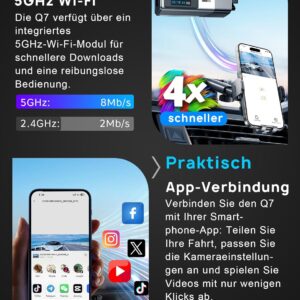 Die Navycrest Q7 Dashcam ist für den täglichen Einsatz konzipiert. Aus unserer Erfahrung in der Fahrzeugausrüstung zeigt sich, dass viele Dashcams an der Übertragungsgeschwindigkeit scheitern. Die Q7 löst dieses Problem durch ein 5GHz-WLAN-Modul, das sicherstellt, dass Videodaten in Sekunden auf dem Endgerät verfügbar sind. Dies ist entscheidend, wenn man direkt vor Ort bei einem Vorfall einen Beweis vorzeigen oder sichern muss.