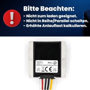 - Hohe Belastbarkeit: Mit einem Ausgangsstrom von 20A und einer Nennleistung von 240W lassen sich problemlos leistungsstarke Verbraucher wie Scheinwerfer oder Kommunikationsanlagen betreiben.