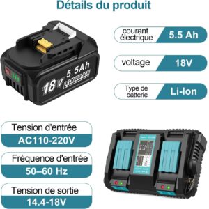 - Hohe Kapazität: Mit 5,5Ah hast du genug Reserven, um auch energiehungrige Geräte wie Winkelschleifer oder Handkreissägen über eine längere Zeit unter Last zu halten.