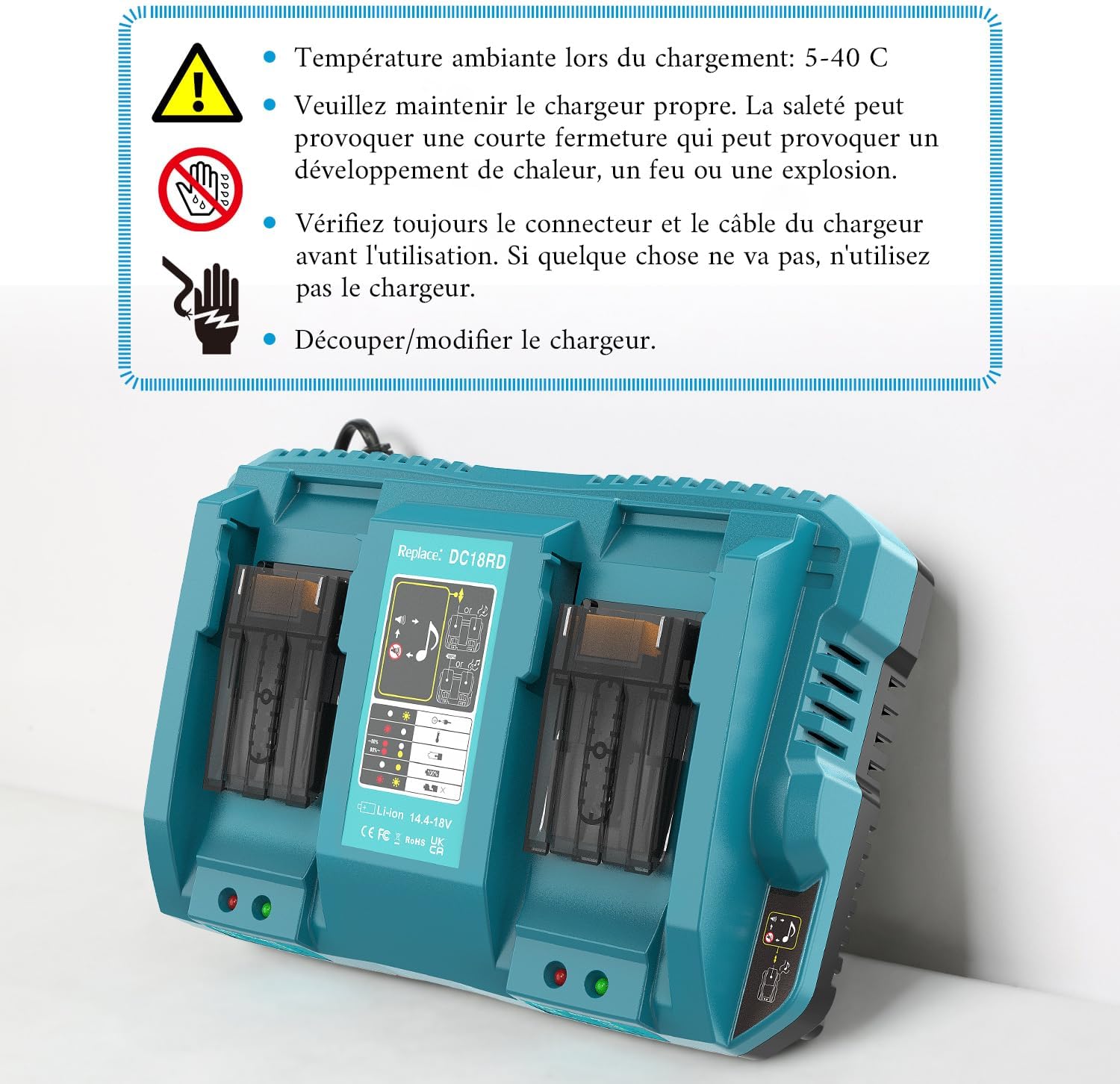 Produktbeschreibung für DC18RD Ladegeräte und 2 Stücke