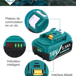 DC18RD Ladegeräte und 2 Stücke 5.5Ah Ersatzakkus für Makita 18V Akkus, Kompatibel mit BL1815 BL1830 BL1840 BL1850 BL1860 BL1890 BL1415 BL1430 BL1440