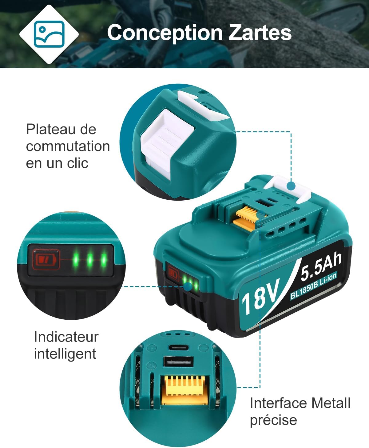 Kompatibilität18V BL-Serie (BL1815-BL1890)