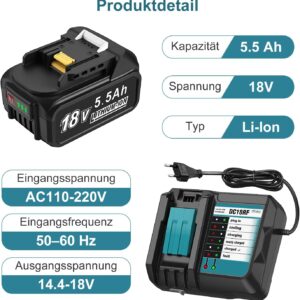 Das DC18RF Ladegerät-Set mit 18V 5.5Ah Akku ist die ideale Lösung für Profis und ambitionierte Heimwerker, die ihre Makita-Geräte effizient und ohne Ausfallzeiten betreiben wollen. Es bietet eine zuverlässige Energieversorgung für den täglichen Einsatz auf der Baustelle oder in der Werkstatt, damit deine Maschinen auch bei anspruchsvollen Aufgaben nicht den Atem verlieren.