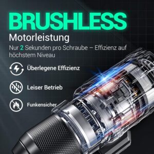 - Effizienter 400W bürstenloser Motor: Die Motorentechnik sorgt für weniger Verschleiß, da keine Kohlebürsten reiben, was dir eine deutlich längere Standzeit und konstante Leistung unter Last garantiert.