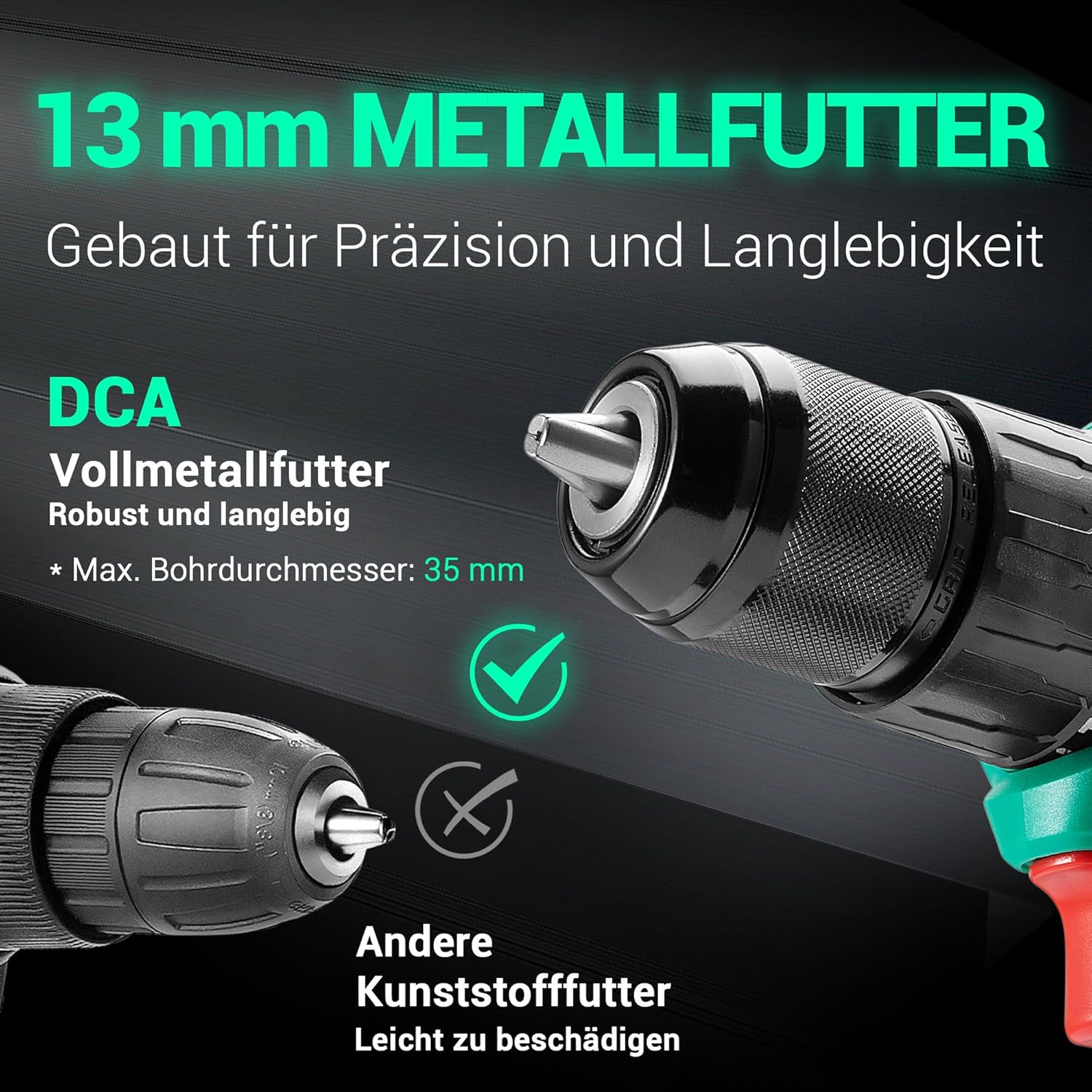 - Robustes 13mm Vollmetall-Bohrfutter: Schluss mit ratternden Bohrern; das Metallfutter packt ordentlich zu und hält auch bei hohem Drehmoment absolut fest.