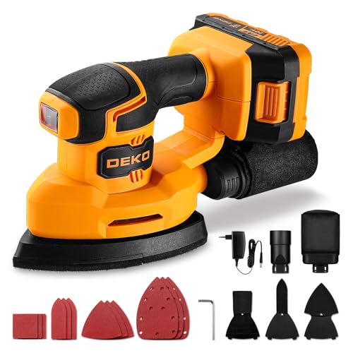 Deltaschleifer Akku Schleifer für Holz: DEKOPRO 20V Dreieckschleifer Multischleifer 13000 U/min, Schleifmaschine mit Absaugung, 3 Zusatzzubehör und 12 Schleifblättern, zum Schleifen Polieren für Holz Deltaschleifer Akku Schleifer für Holz: DEKOPRO 20V Dreieckschleifer Multischleifer 13000 U/min, Schleifmaschine mit Absaugung, 3 Zusatzzubehör und 12 Schleifblättern, zum Schleifen Polieren für Holz
