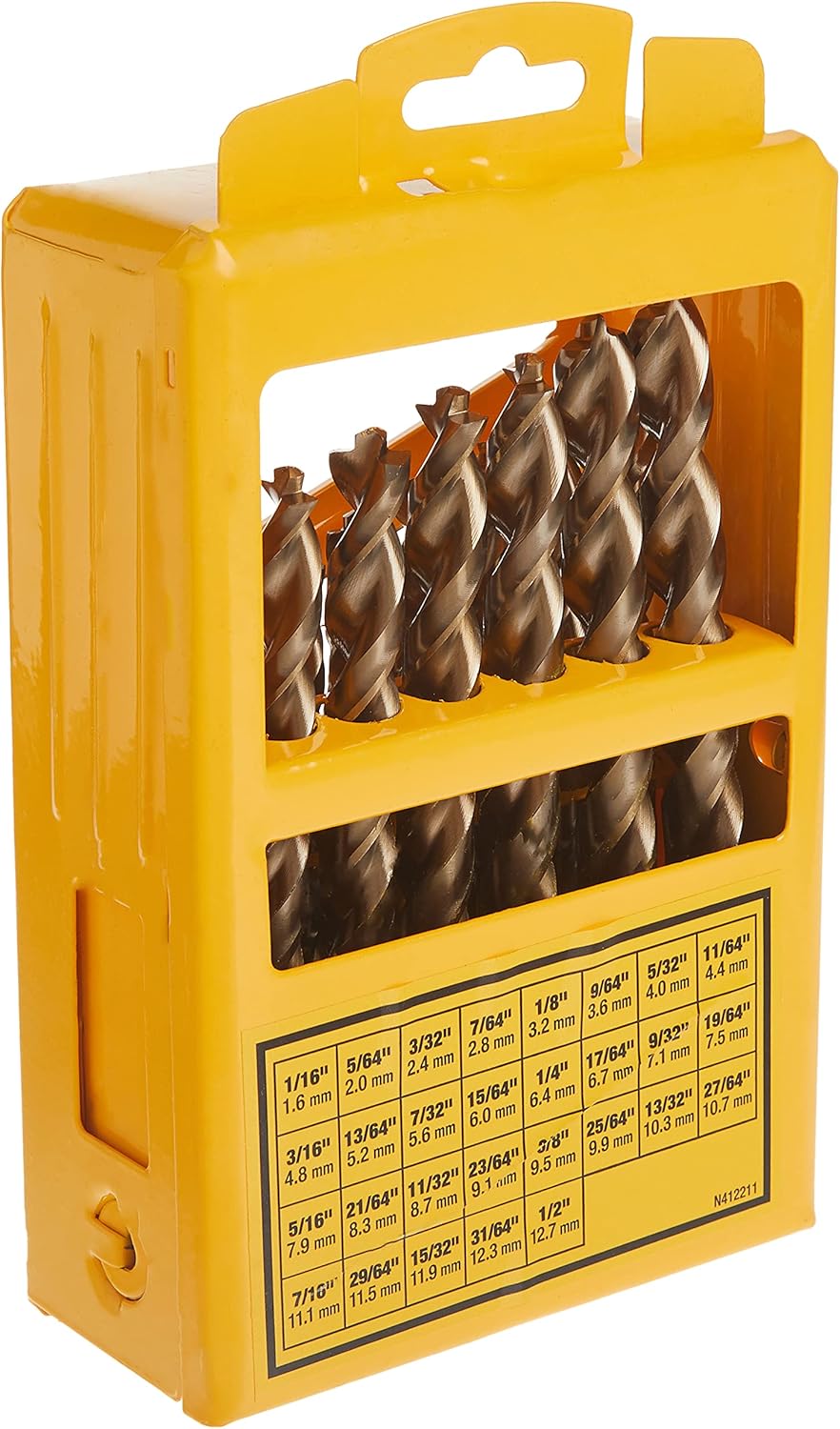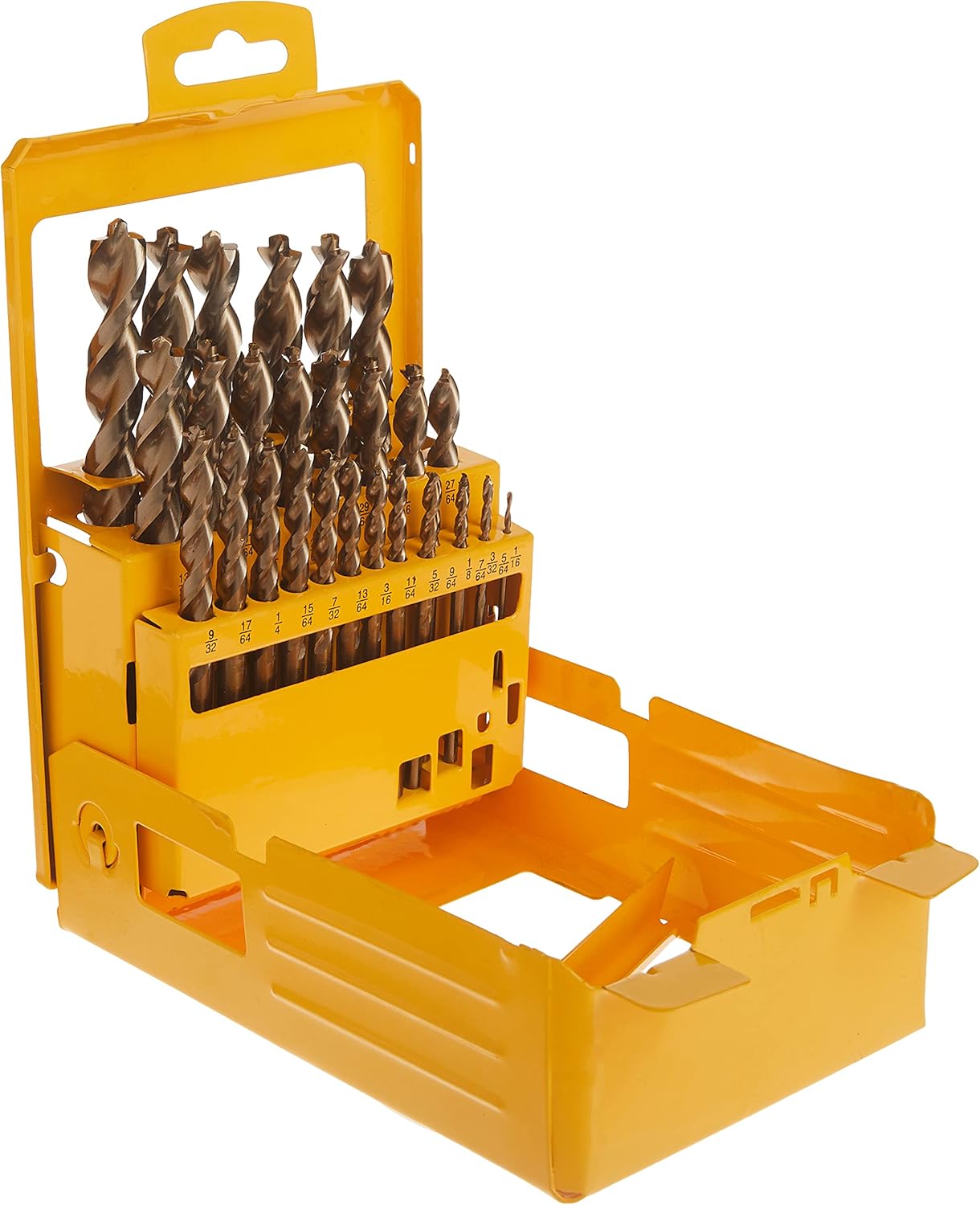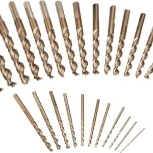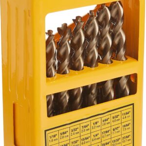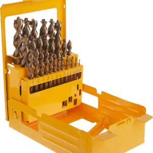 - 29 goldene Eisenoxid-Bohrer. (8) Split-Point-Größen: 1/16 Zoll bis 11/64 Zoll; (21) Pilotspitzen-Größen: 3/16 Zoll bis 1/2 Zoll
