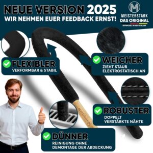 Diese Bürste zeichnet sich durch ihre geprüfte Markenqualität aus und wurde im Heizkörperbürsten-Test mit der Note „SEHR GUT“ ausgezeichnet. Beim Kauf sollten Kunden auf das Original von MEISTERSTARK achten, um sich von minderwertigen Imitaten abzugrenzen und die bewährte Langlebigkeit zu erhalten.
