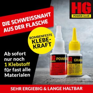 Die Schweißnaht aus der Flasche von HG Power Glue ist die ideale Lösung für Handwerker, Mechaniker und ambitionierte Heimwerker, die keine Zeit für langwierige Reparaturen haben. Das 2-Komponenten-System ermöglicht eine extrem belastbare Verbindung durch die gezielte Kombination von Spezialkleber und Granulat, die weit über die Leistung herkömmlicher Sekundenkleber hinausgeht.