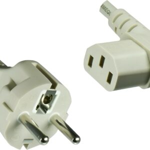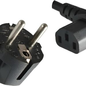Der CEE 7/7 Stecker ist der in Europa standardisierte Schutzkontakt-Stecker. Er ist so konzipiert, dass er sowohl in deutsche Schuko-Steckdosen als auch in französische Steckdosen mit Erdungsstift passt. Zudem ist das Kabel mit einer abgewinkelten C13-Buchse ausgestattet, die sich ideal für platzsparende Anschlüsse an Hardware eignet.