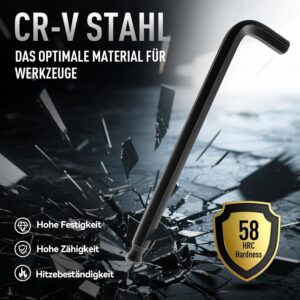 - Langarm-Design für Hebelkraft: Durch den längeren Schenkel erzeugst du deutlich mehr Drehmoment, um festsitzende Schrauben einfacher zu lösen.