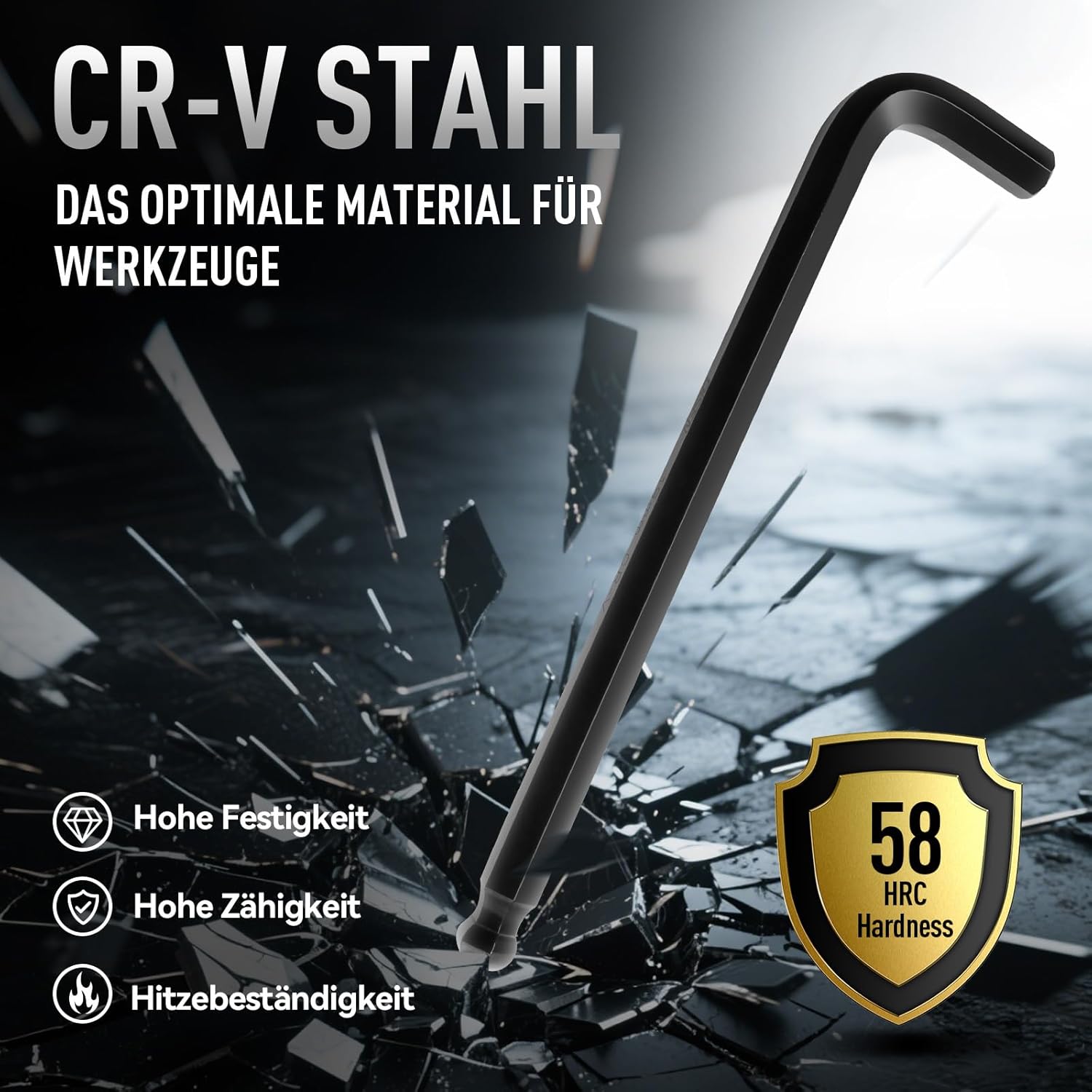 - Wärmebehandelter CR-V-Stahl: Die Fertigung aus hochwertigem Chrom-Vanadium-Stahl garantiert hohe Härte und Formstabilität unter Last.