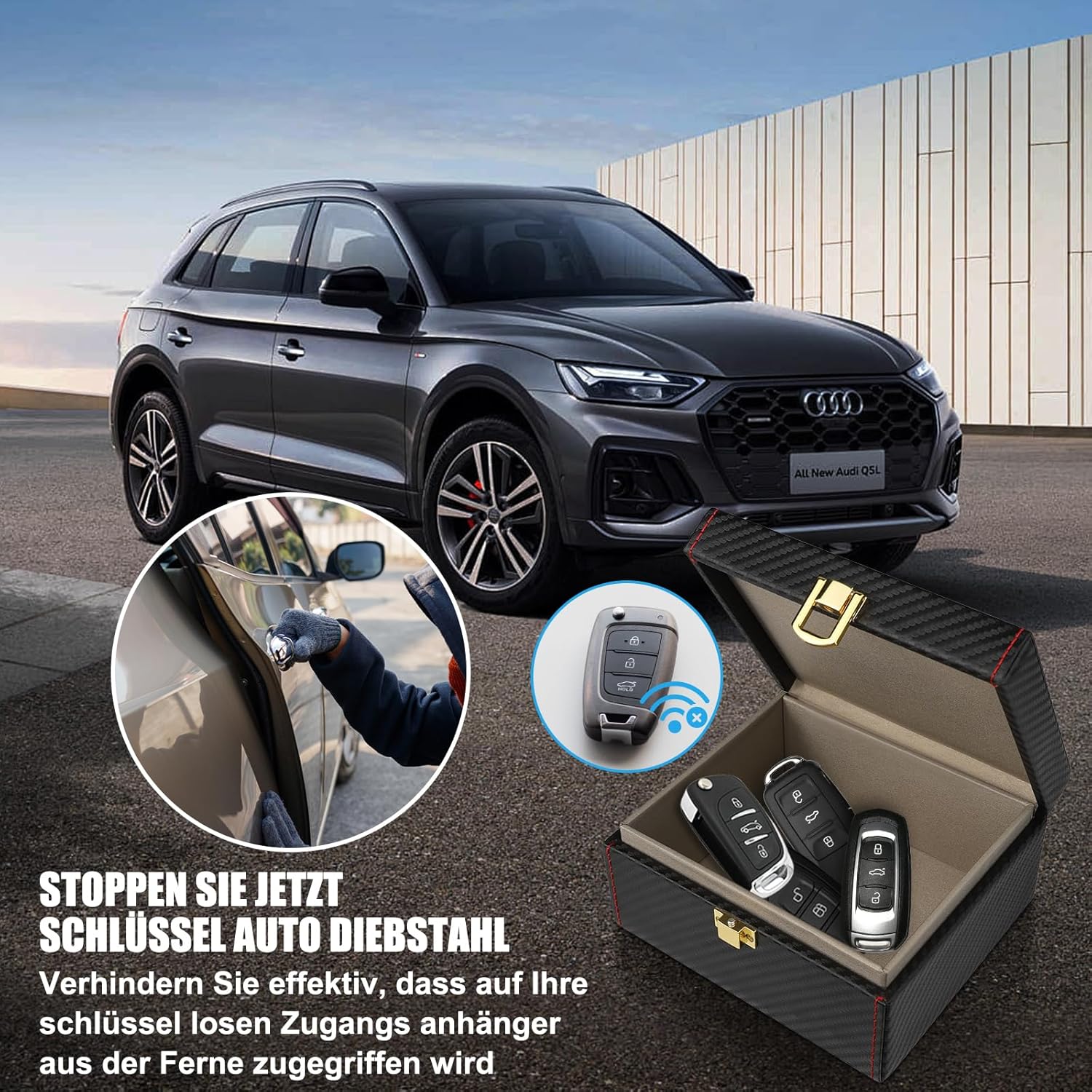 Die Box ist universell für verschiedene Marken konzipiert, die über ein Keyless-Go-System verfügen. Legen Sie Ihren Autoschlüssel einfach hinein, um den Signalblocker zu aktivieren. Die Handhabung ist sehr intuitiv und erfordert keine komplexen technischen Einstellungen.
