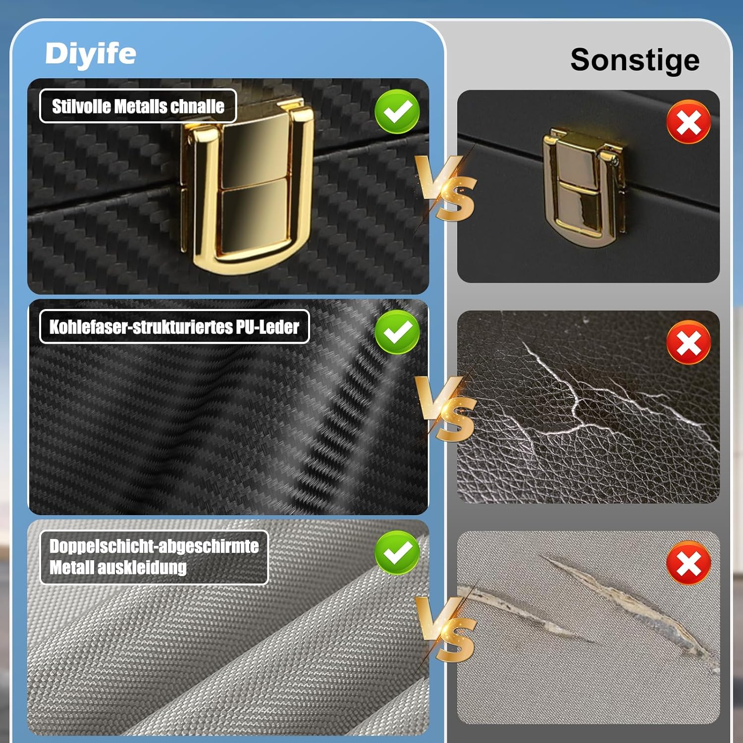 Schütze dein Fahrzeug und deine sensiblen Daten zuverlässig vor digitalen Diebstählen mit der Diyife Keyless Go Faraday Box. Diese Abschirmbox richtet sich an sicherheitsbewusste Fahrzeughalter, Handwerker und Profis, die Schlüssel für Keyless-Go-Systeme sowie RFID-Karten effizient und manipulationssicher aufbewahren wollen.