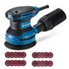 DongCheng Exzenterschleifer 300W, 125mm Schleifmaschine, 6 Geschwindigkeiten, 4,000-12,000 U/min mit Staubfangbehälter und 10 Schleifpapier, ideal für Holzbearbeitungsprojekte und Heimwerkerarbeiten