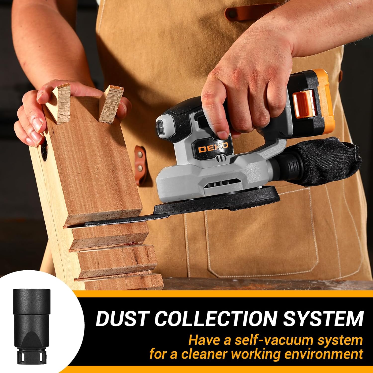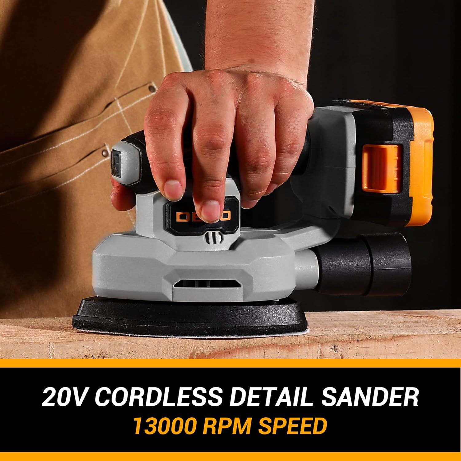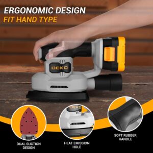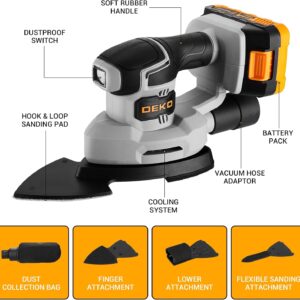 Dreieckschleifer Akku Schleifmaus: DEKOPRO 20V Multischleifer,13000 U/min, Schleifmaschine mit Absaugung inklusive 2.0Ah Akku und Ladegerät, 3 Zusatzzubehör und 12 Schleifblättern, Gelbgrau