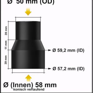 - Exakte Passform: Das Übergangsstück wurde präzise für 50 mm auf 58 mm ausgelegt, was das lästige Abdichten mit Klebeband endlich überflüssig macht.