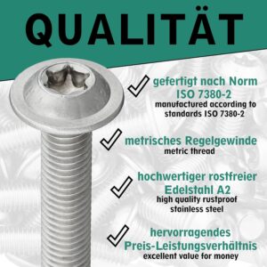 ![DSM – Linsenkopfschrauben M8 x 50 mm – 25 Stück mit Flansch und Torx Antrieb TX40 nach ISO 7380-2 – Edelstahl Schrauben A2 rostfrei [TrueSpec Präzision] Vollgewinde Flachkopfschrauben Möbelschrauben – Bild 5](https://werkking.de/wp-content/uploads/2026/04/8169GCOHnJL._AC_SL1500_-11.jpg)