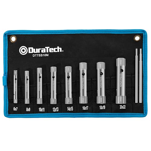 DURATECH 10-tlg Rohrsteckschlüsselsatz inkl. Drehdorn, Metrisch, 6-22 mm, Doppelsteckschlüssel-Set Mit Rolltasche für Arbeiten am Wasserhahn, Zündkerzen Installation und ReparaturDURATECH 10-tlg Rohrsteckschlüsselsatz inkl. Drehdorn, Metrisch, 6-22 mm, Doppelsteckschlüssel-Set Mit Rolltasche für Arbeiten am Wasserhahn, Zündkerzen Installation und Reparatur