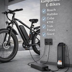 Dennoch gibt es technische Grenzen: Da es sich um ein leistungsstarkes 6A Ladegerät handelt, sollte sichergestellt werden, dass die Ladebuchse am E-Bike sauber und trocken ist, um Spannungsabfälle zu vermeiden. Das Gerät ist kompakt genug, um in einer größeren Satteltasche oder im Rucksack transportiert zu werden, wurde jedoch primär für den stationären Einsatz optimiert. Es ersetzt das Originalgerät vollwertig, sofern der Steckeranschluss mit deinem speziellen Akku-Modell übereinstimmt.