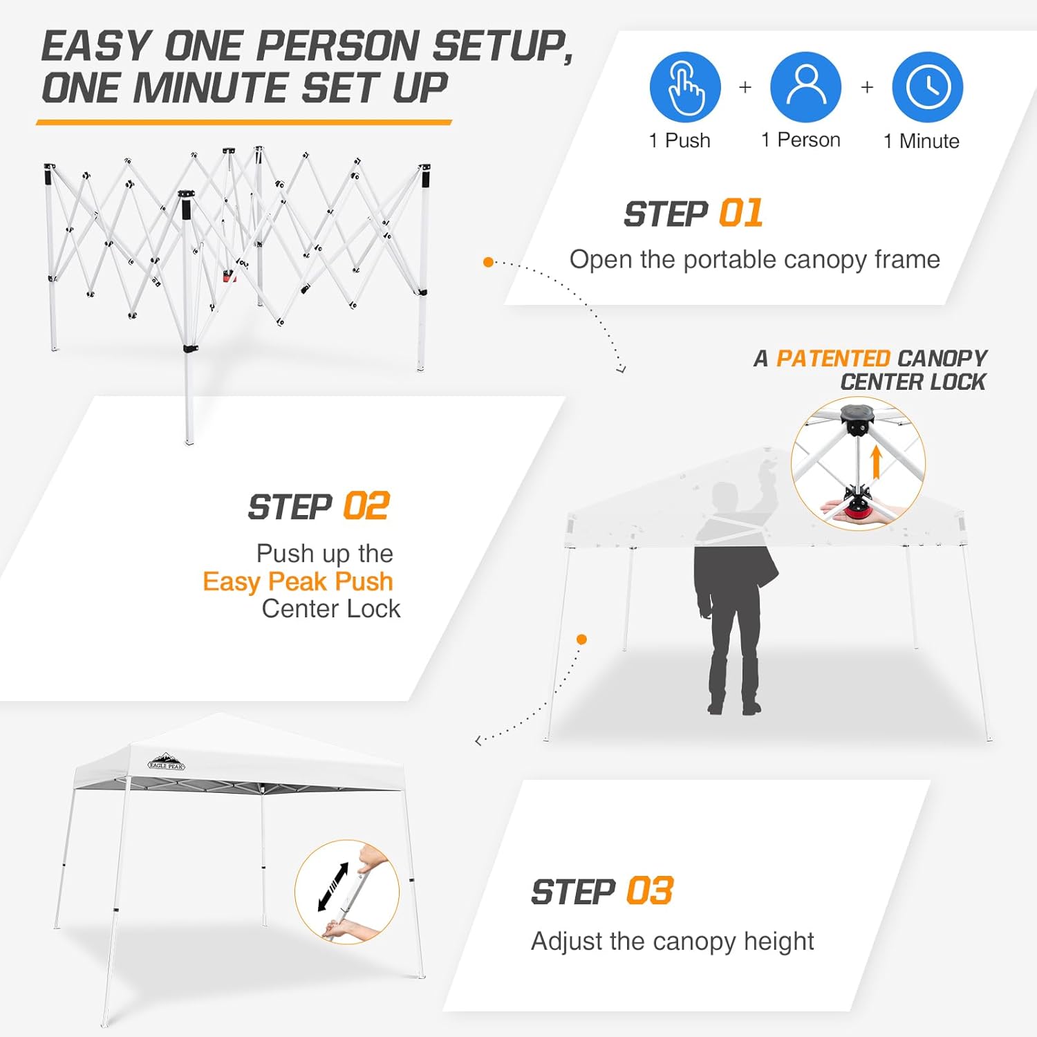 Produktbeschreibung für Eagle Peak 3 m x 3 m großes Pop-Up-Zelt mit schrägen Beinen