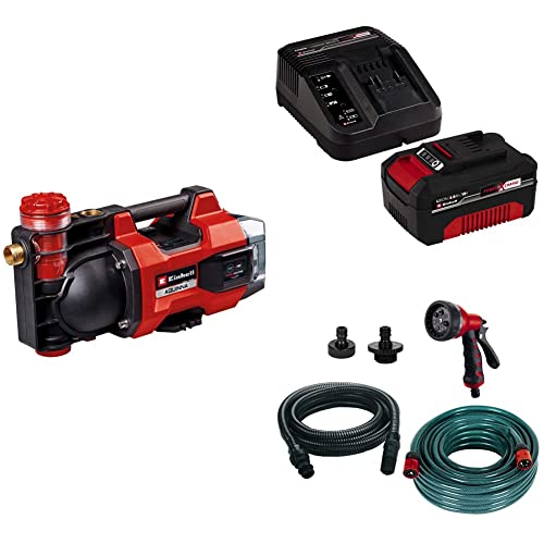 Einhell Akku-Gartenpumpe AQUINNA 18/30 F LED Power X-Change (18 V, max. 3000 L/h Fördermenge, 2 Akku-Steckplätze, ECO-/BOOST-Modus, Vorfilter, inkl. 4,0 Ah Akku, Ladegerät, 5-tlg. Zubehör-Set)