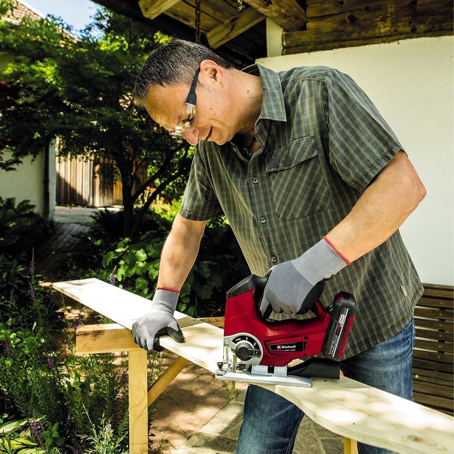 4. Beste Entscheidung! Hatte vorher eine kabelgebundene Säge und die Bewegungsfreiheit ist einfach Gold wert. Gartenhäuschen gebaut, Möbel zusammengebastelt – alles problemlos. Mit einem 4Ah Akku komme ich locker durch ein ganzes Wochenendprojekt. Bin positiv überrascht von der Einhell-Qualität.