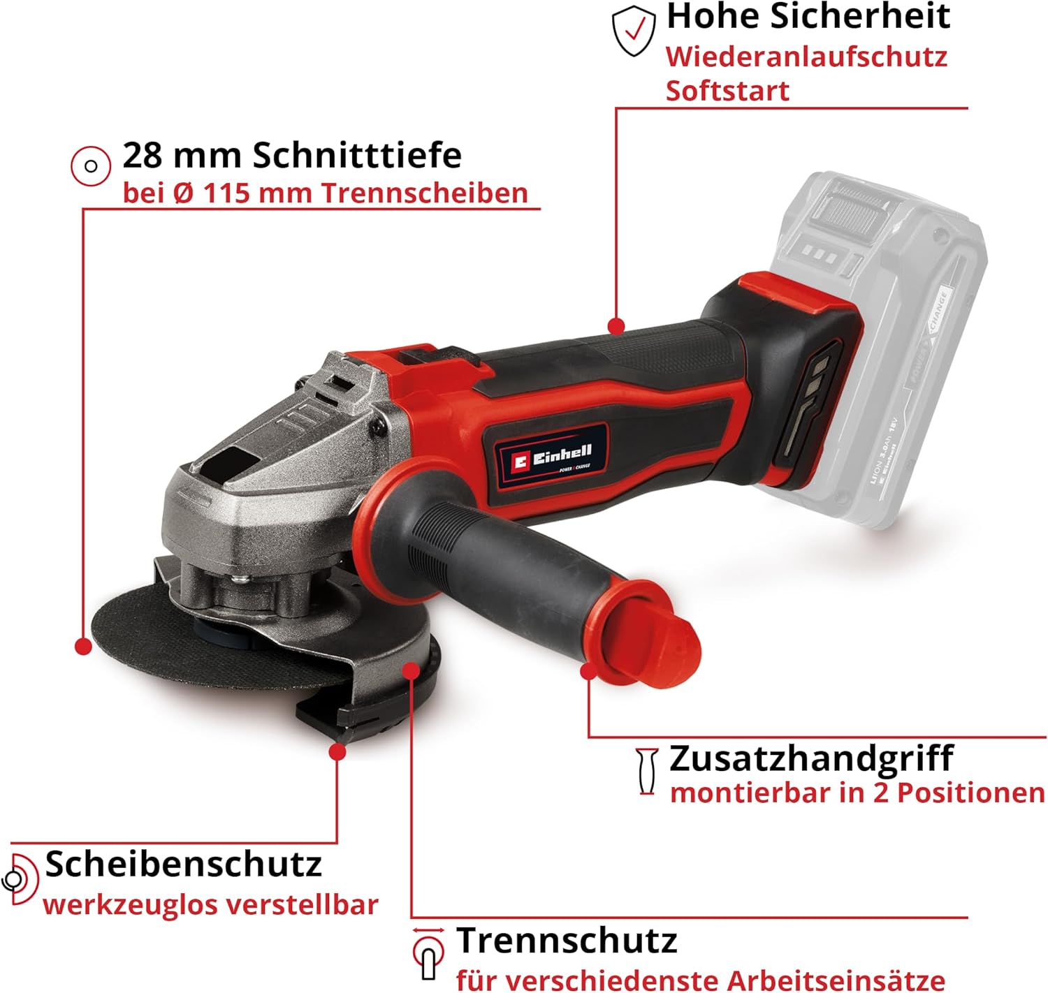 Vorteile des Produkts Einhell Akku-Winkelschleifer TE-AG 18/115-2 Li
