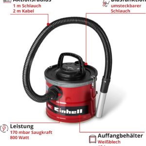 Einhell Aschesauger TC-AV 1830 D (800 W, 170 mbar Saugleistung, 18 L Auffangbehälter, Filtersystem, Feinstaubvorfilter, Blasfunktion, 1 m Schlauch, 2 m Kabel)Einhell Aschesauger TC-AV 1830 D (800 W, 170 mbar Saugleistung, 18 L Auffangbehälter, Filtersystem, Feinstaubvorfilter, Blasfunktion, 1 m Schlauch, 2 m Kabel)