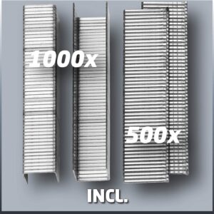 Der Einhell TC-EN 20 E ist speziell für Klammern vom Typ 53 konzipiert. Diese Standardklammern sind weit verbreitet und in verschiedenen Längen erhältlich, was den Tacker vielseitig einsetzbar macht. Die praktische Magazin-Füllstandsanzeige zeigt jederzeit an, wann Klammern nachgefüllt werden müssen.