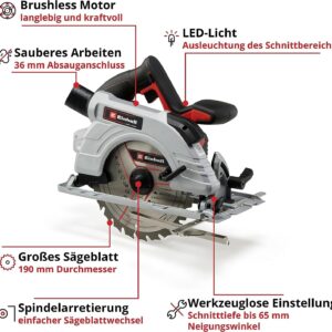 Technische Eigenschaften für das Produkt Einhell Professional Akku-Handkreissäge TP-CS 18/190 Li BL-Solo