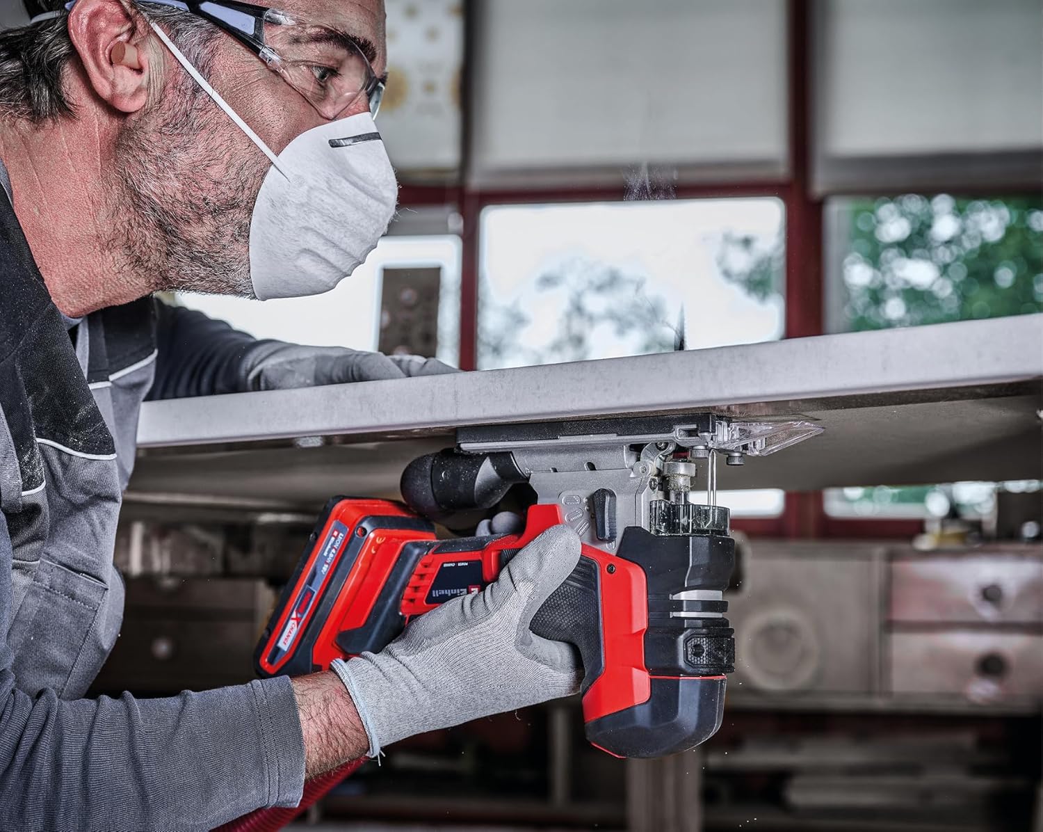 Die Einhell Professional TP-JST 18/135 Li BL erreicht eine maximale Schnitttiefe von 135 mm in Holz und 10 mm in Stahl. Zusätzlich sind Schrägschnitte bis zu einem Winkel von 45° möglich, was flexible Arbeiten ermöglicht.