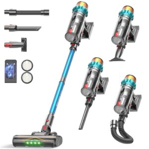 ElecKeys Akku Staubsauger 50000Pa/580W/70Min, Staubsauger Kabellos mit LED Display, 1,8L Akkustaubsauger mit Anti-Tangle-Bürste, Selbststehend für Tierhaare Teppiche Hartböden Auto, Blau, K10