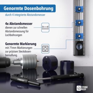 - Verschiebbare Bohrlöcher: Vier variabel einstellbare Markierungspunkte erlauben das präzise Anzeichnen für Steckdosenkombinationen, ohne dass das Werkzeug ständig neu ausgerichtet werden muss.