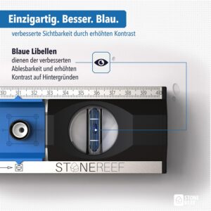 - Lagerung: Die Wasserwaage sollte hängend oder liegend gelagert werden, um mechanische Spannungen am Gehäuse zu vermeiden.