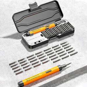 Dieser elektrische Präzisionsschraubendreher ist das ideale Werkzeug für Elektronik-Enthusiasten, Hobby-Bastler und Servicetechniker, die bei feinteiligen Reparaturen auf Effizienz angewiesen sind. Mit seinem umfangreichen 46-teiligen Set löst du Schraubaufgaben an Kleingeräten schnell, präzise und ermüdungsfrei.
