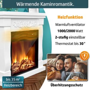 Der Elektrokamin Fiona ist eine grundsolide Lösung für Anwender, die keine Lust auf Brennholzschleppen und Schornsteinfeger haben, aber dennoch nicht auf visuelle Wärme verzichten möchten. Die Energieeffizienz ist durch den Auto-Stopp-Thermostat zeitgemäß gelöst. Besuchen Sie unsere Kategorie für Heizen & Klimatisierung für weiteres Zubehör.