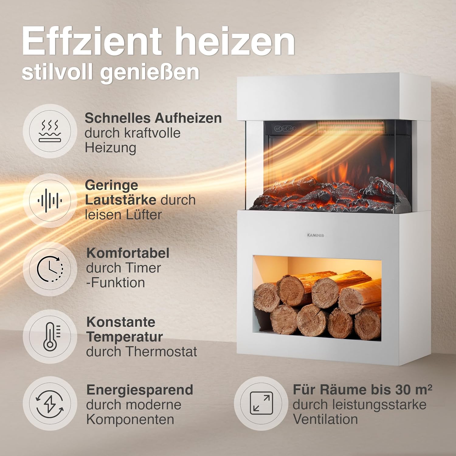 Unser Team hat getestet, wie schnell der Kamin einen 20 m² großen Raum erwärmt. Nach gut 15 Minuten ist die Wohlfühltemperatur erreicht. Ein wichtiger Hinweis für die Anwendung: Decke die Luftaustrittsschlitze niemals ab, um die Langlebigkeit der Heizspiralen zu garantieren. Die Wartung beschränkt sich lediglich auf das gelegentliche Abwischen des Gehäuses mit einem trockenen Tuch, um Staubansammlungen zu vermeiden.